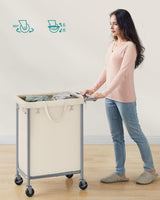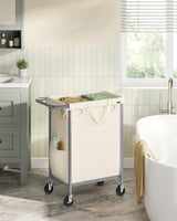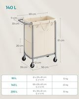 Wasmand - Met 2 vakken - 140 liter - Met handvat en wielen - Beige