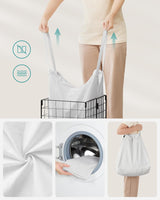 - Materiaal: Het metalen frame zorgt voor extra stevigheid en duurzaamheid, terwijl de uitneembare waszak eenvoudig te reinigen en te onderhouden is.