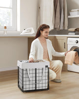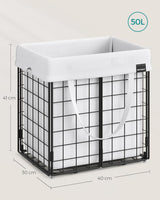 Deze stijlvolle en praktische uitneembare wasmand met metalen frame is de perfecte oplossing voor het organiseren van uw wasgoed. De wasmand heeft een royale capaciteit van 50 liter en is ontworpen om uw dagelijkse wasroutine te vereenvoudigen.