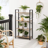 - Gode materialer taler for sig selv: denne hylde med 4 niveauer er lavet af stålramme og træskure, der udvider levetiden. Hver planke kan bære en belastning på op til 10 kg