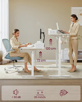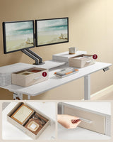 Desk - Elektrisk skrivebord - Højdejusterbar - med stikkontakt og 2 skuffer - 60x140 cm - Hvid