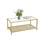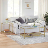 • Som et kunstværk: Den gennemsigtige bordplade og den gyldne metalramme gør sofabordet moderne og elegant, tilføj et kunstnerisk look til din stue og forskønne varerne på den