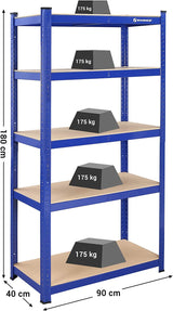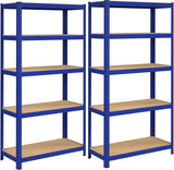 Opbevaringsstativ - Sæt med 2 - Kælderskabe - 5 Justerbare hylder - Metalplanker - Blå
