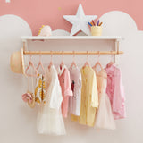 • Koukkujen edut: Rosé -kultametallikoukut lisäävät kiiltävän kosketuksen. Ne voivat myös ajaa 360 °, jotta voit käyttää ripustimia tarpeen mukaan järjestäessäsi lasten vaatteita