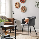 Eetkamerstoel - Keukenstoel - met armleuningen - Metalen poten - Fluwelen bekleding - Grijs