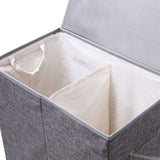 - Divorț după culoare sau material? Decizia depinde de tine! Geanta de rufe din acest sicriu este împărțită în 2 compartimente - unul pentru haine ușoare, unul pentru haine întunecate; Sau separați -vă hainele pe material.
