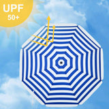 Parasol - pentru plajă - Ecran de grădină - Protecție UV până la UPF 50+ - Tiltable - cu geanta purtătoare - albastru cu dungi, alb