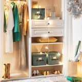 Sätt dessa förvaringslådor med julatema i din garderob - kombinationen av grönt och snöflingmönster ger det en söt julkänsla. Det är julen i din garderob året runt! I dessa lådor kan du lagra kläder, juldekorationer eller leksaker.