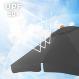 • Det följer solen: lutningsdelen i parasolen består av en zinklegering av hög kvalitet som motstår rost och brytning. Detta rektangulära paraply med 3 x 2 m längd kan lätt lutas för att få mer skugga från morgonen till kvällen