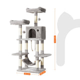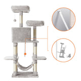 Scratching Post - Cat House - med hängmatta - 150 cm - ljusgrå