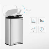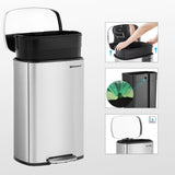 Skräpfack - avfallsbask - 50 liter - stålpedalfack - plast inner hink - mjukklosan - lufttät - silver